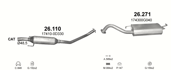 Sportsudstødning Citroen C2 VTS, C2 VTR 2004-2009