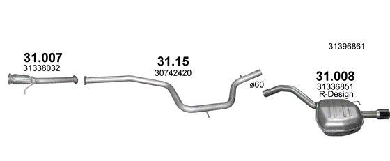 Mellemrør Volvo V70 III 2.0D/2.4D