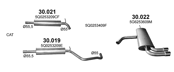 Sportsudstødning Audi A3 type 8P, 2004-2012 Sportback