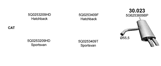 Sportsudstødning Audi A3 type 8P, 2004-2012 Sportback